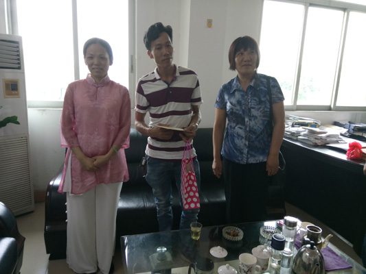 卢丽玮与罗雨康接受慰问金