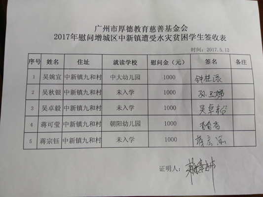 ——广州市厚德教育慈善基金会慰问增城区受灾贫因学生纪实报告