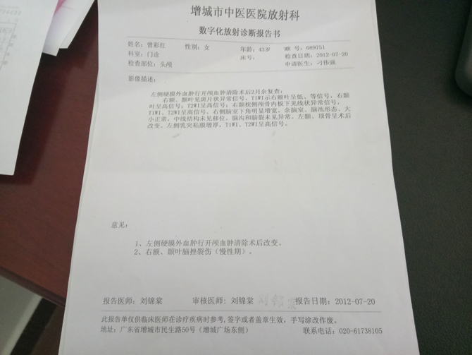 这是曾金添母亲的病情报告